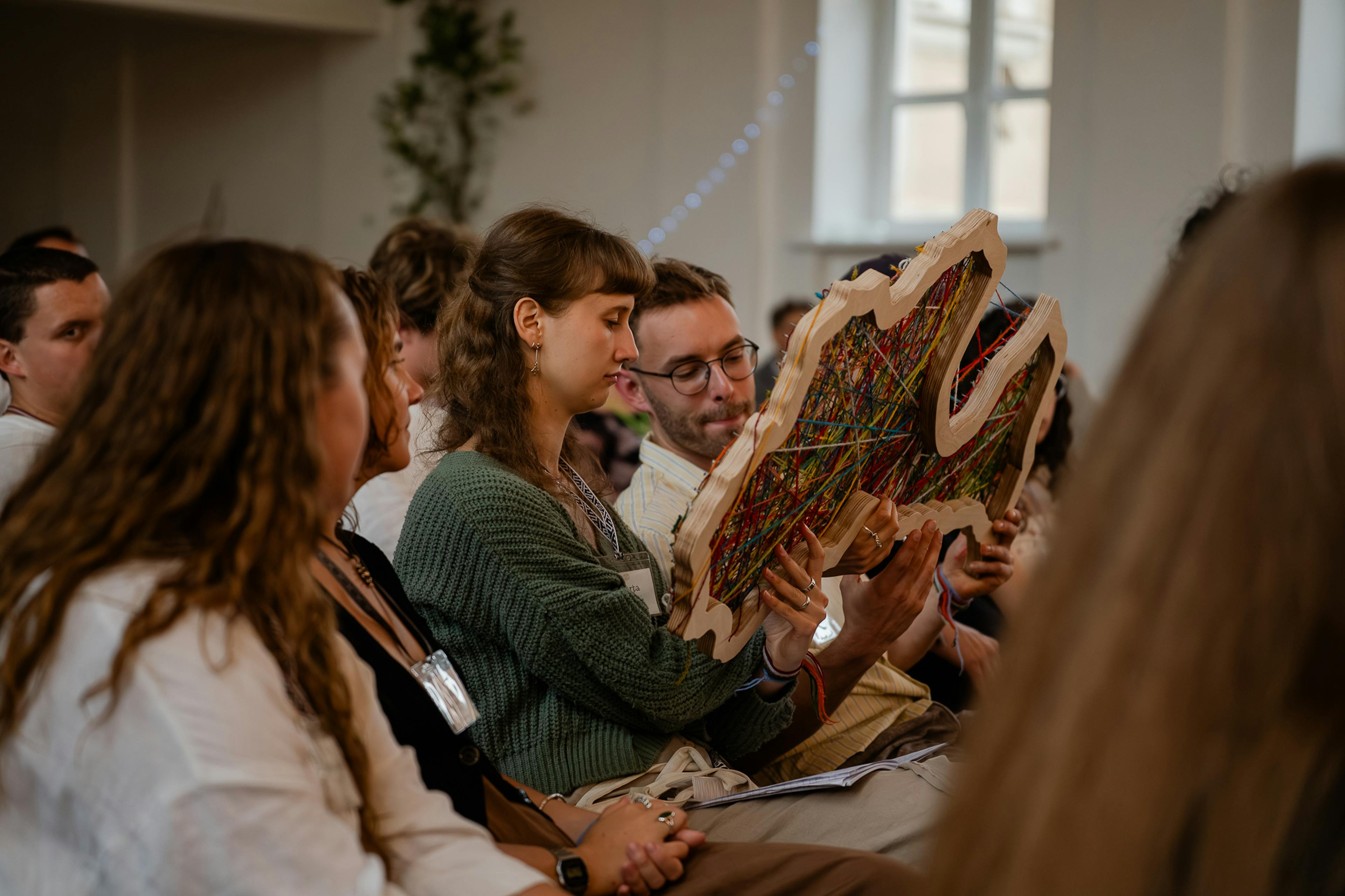 Vakarā semināra dalībnieki, vadības loks, ieviržu un projektu vadītāji, un 2x2 padomes locekļi sarosījās Aglonas Katoļu ģimnāzijas zālē uz STEIGAS noslēguma pasākumu. Semināra vadītājs Ēriks Zeps atklāja pasākumu, un mūsu sastīgoto Latviju. Semināra sākumā ieraudzījām Latvijas koka kontūru un daudzus krāsainus kamolīšus - aicinājums bija visas nedēļas garumā brīvā formā insist kamolīti Latvijā, kad ir gūta kāda jauna stīga - emocija, notikums, piedzīvojums, draudzība. Stīgojums sanāca patiesi biezs.